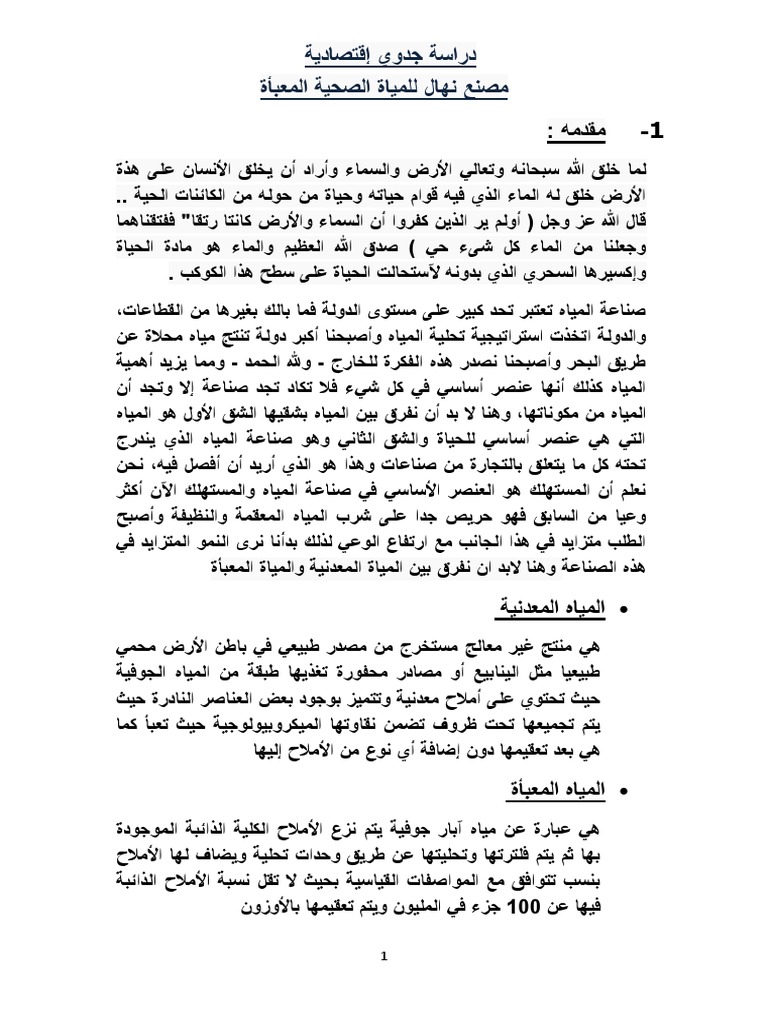 مشروع تحلية مياه صغير في مصر دراسة جدوى محطة تحلية مياه Pdf